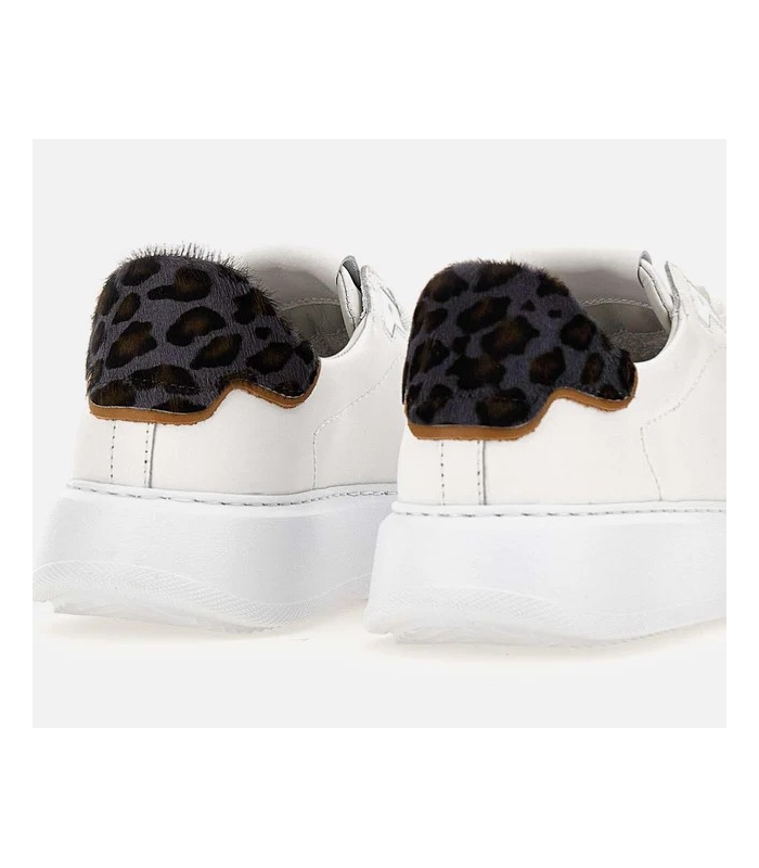 Sneakers donna Philippe Model Paris "Temple low", bianche, ispirazione modelli nineties, talloncino in cavallino animalier a contrasto di colore, sottopiede in memory con costruzione removibile, fodera in spugna di cotone, suola in gomma ultraleggera 4cm, logo su linguetta, lacci piatti con applicazione targhetta in metallo logato, made in Italy. SUOLA 4 CM